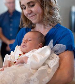 Vorbereitung vor der Taufe (z. B. Ankleiden, Familienmomente)